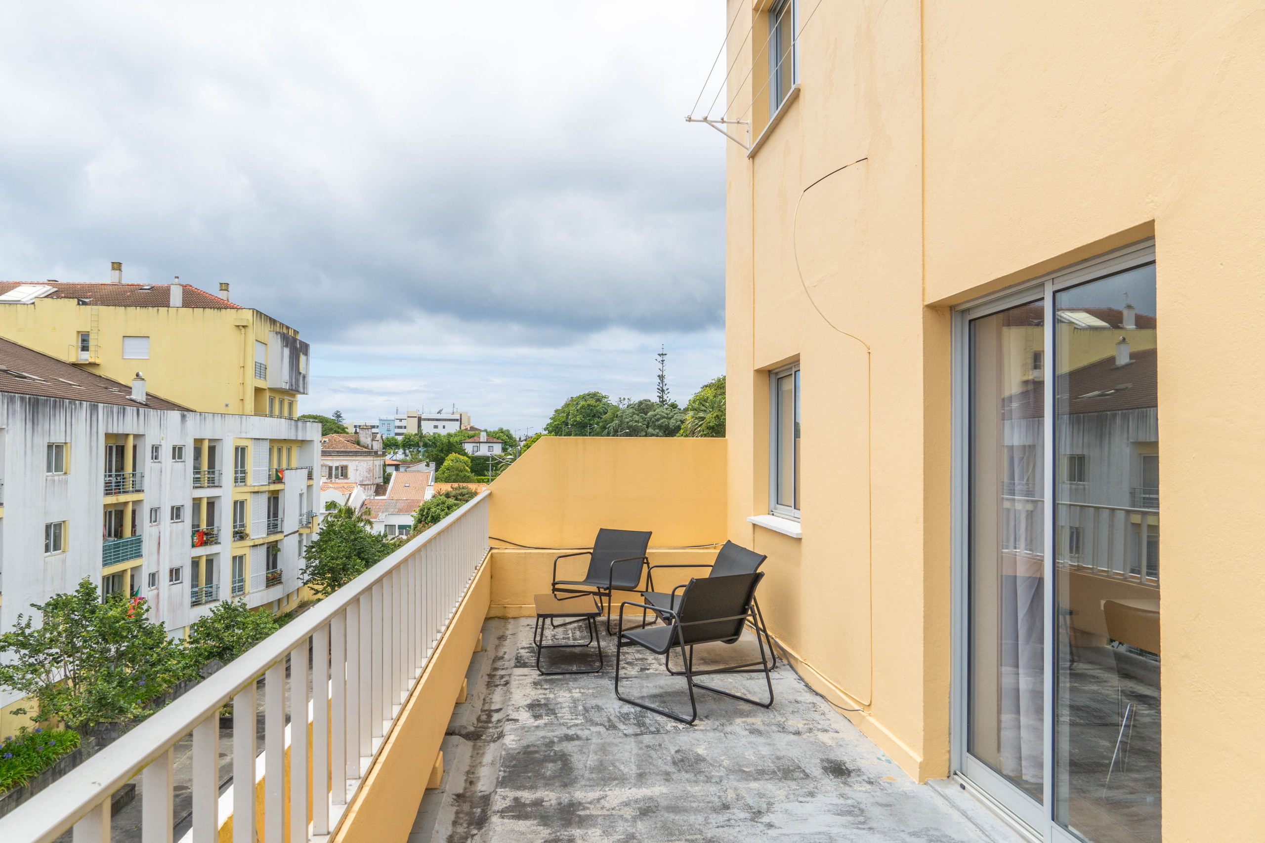 Apartamento T3 no centro histórico de Ponta Delgada, com varanda vista mar e cidade, situado no 3º piso com acesso por elevador ou escadas. Àrea de estar com toda a comodidade e conforto, kitchenette, lavandaria com máquina de lavar, ferro de engomar, TV por cabo, WI FI gratuito. Ideal para famílias com crianças. Situado a poucos minutos a pé dos centros comerciais, universidade, piscinas, restauração, transportes.