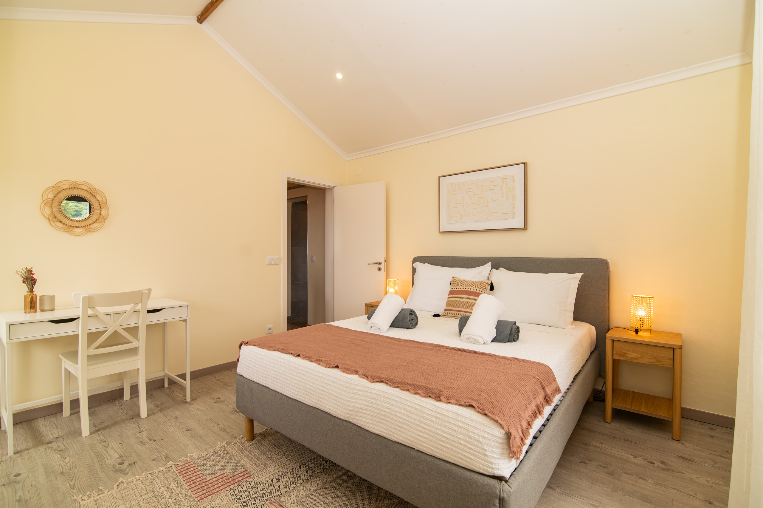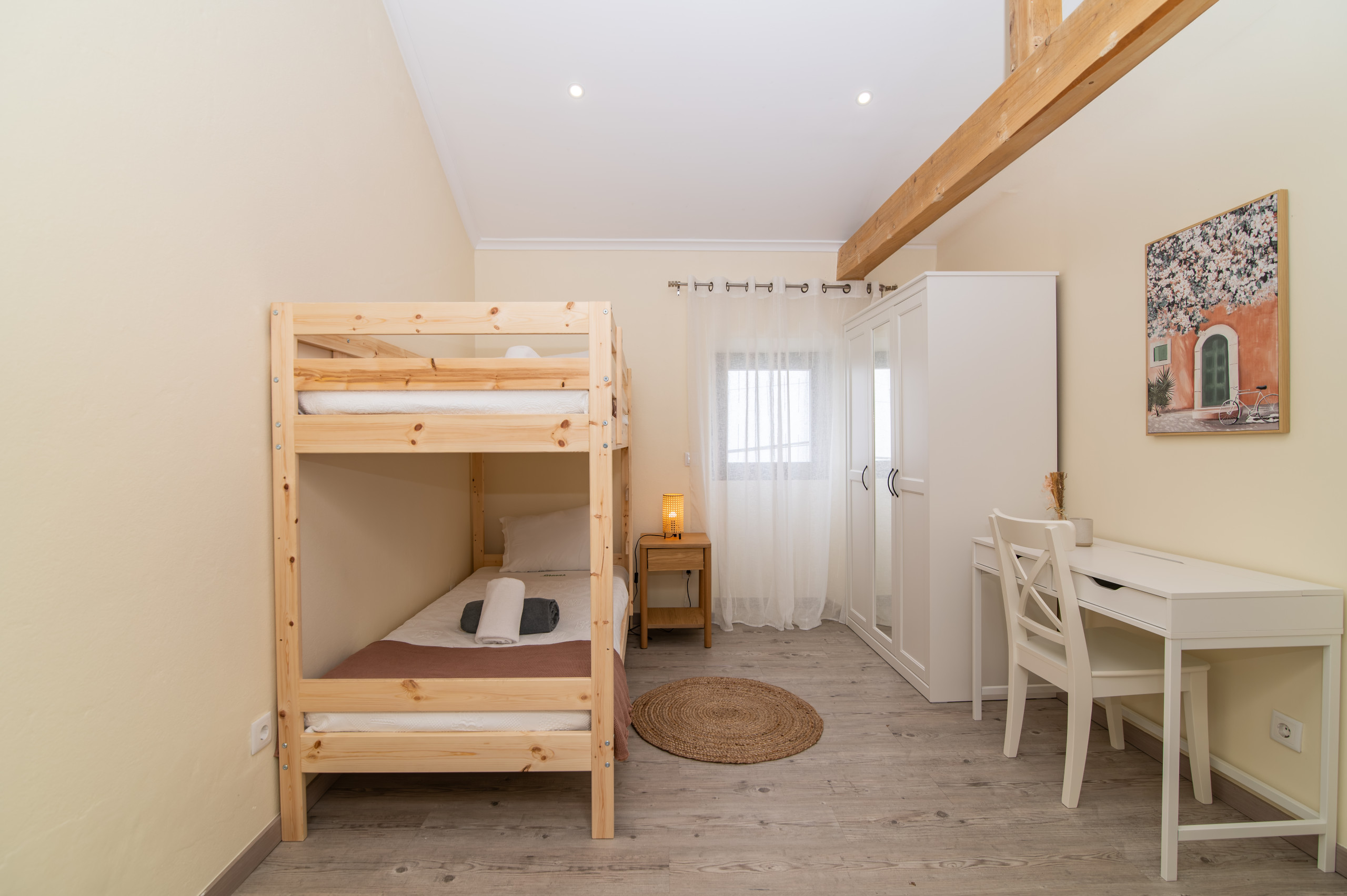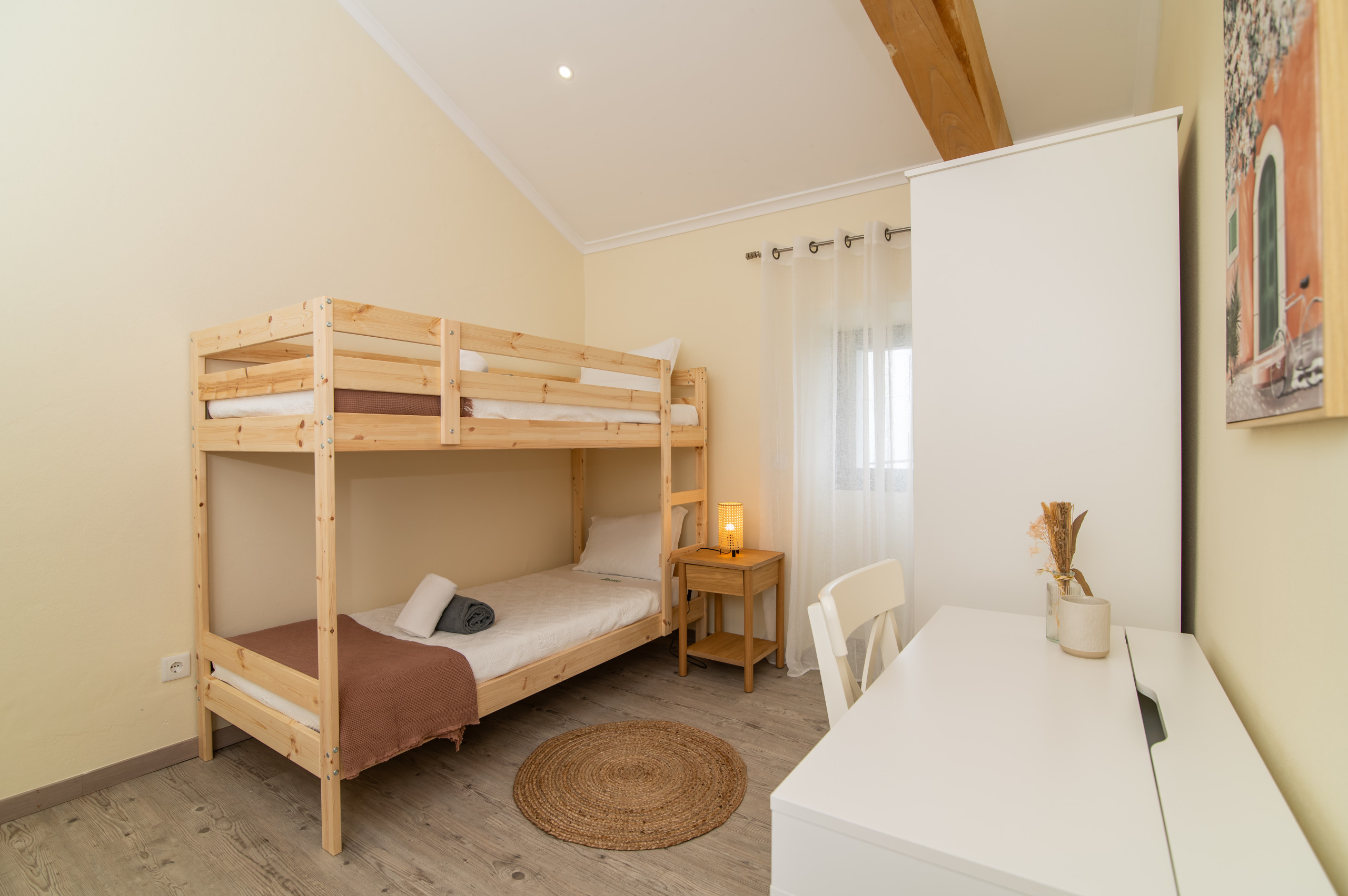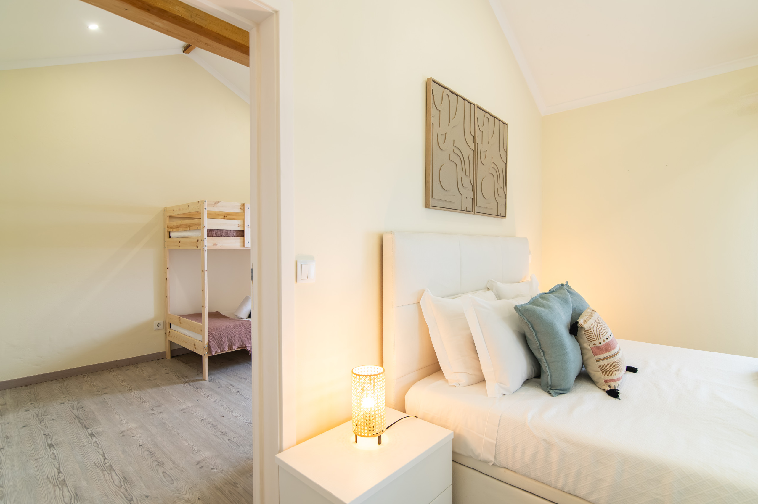A casa dispõe de três quartos acolhedores – dois com cama de casal e um com um beliche, perfeitos para acolher famílias ou pequenos grupos. Com duas casas de banho, a estadia torna-se ainda mais prática e confortável para todos os hóspedes.