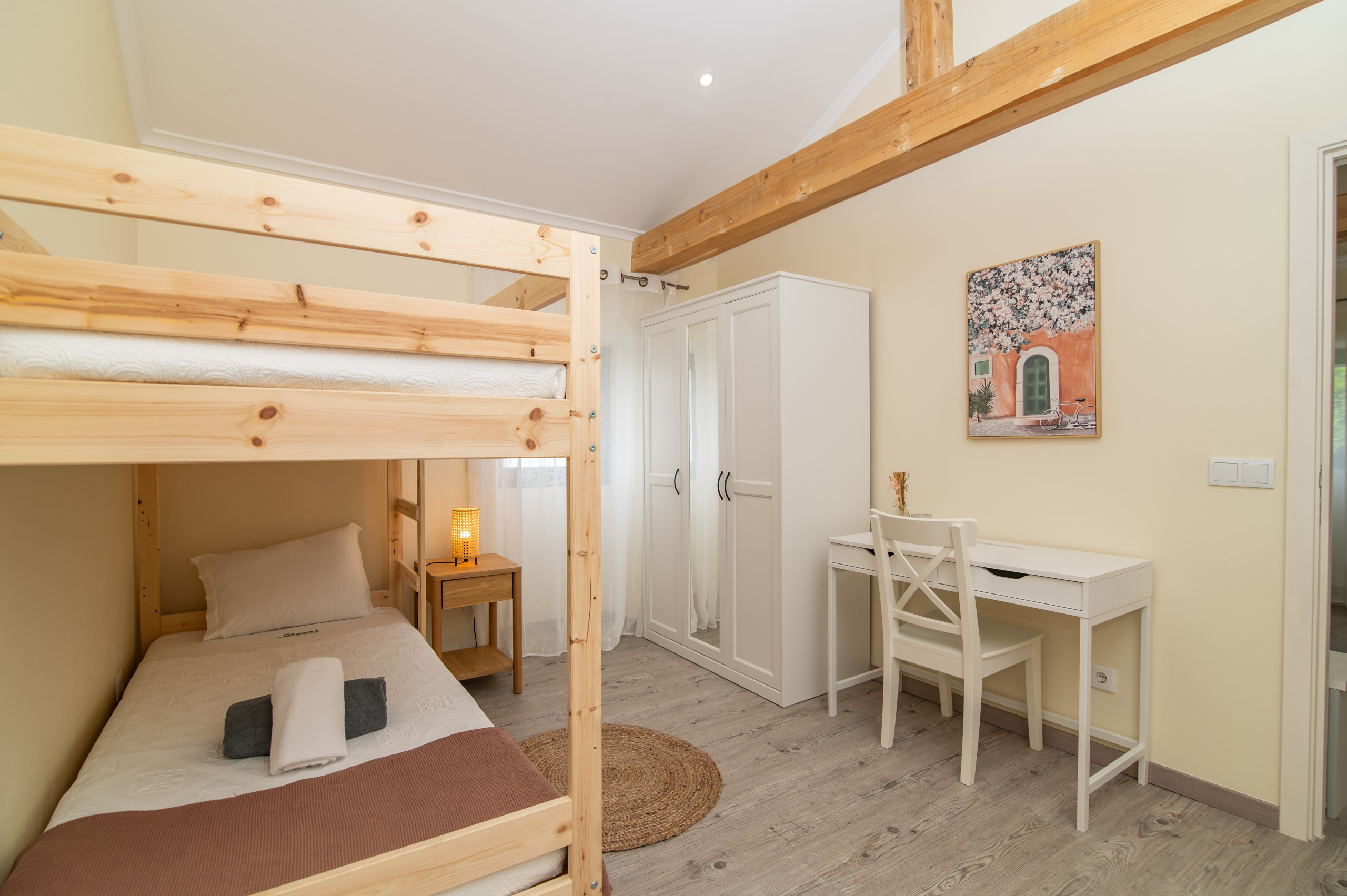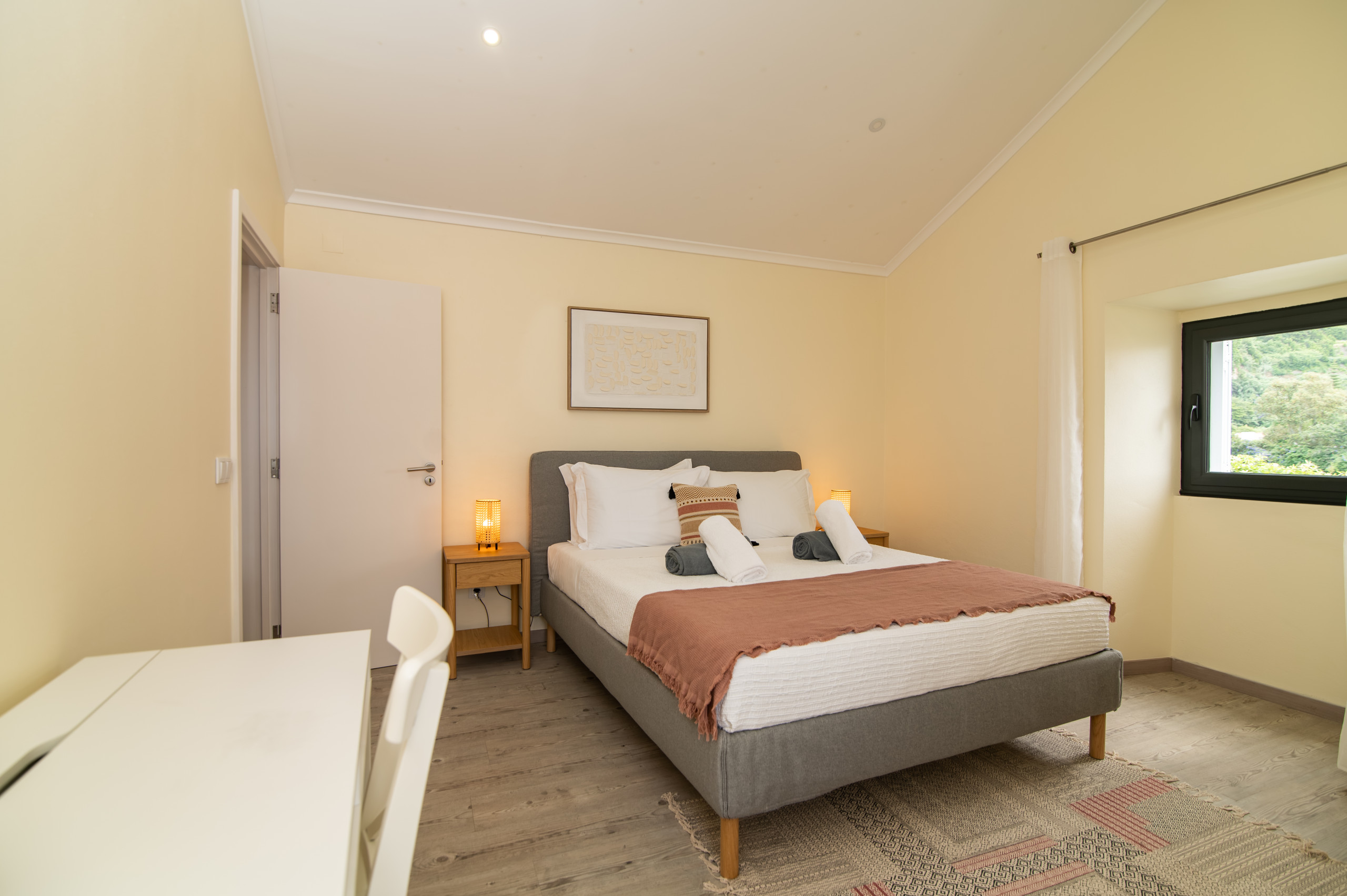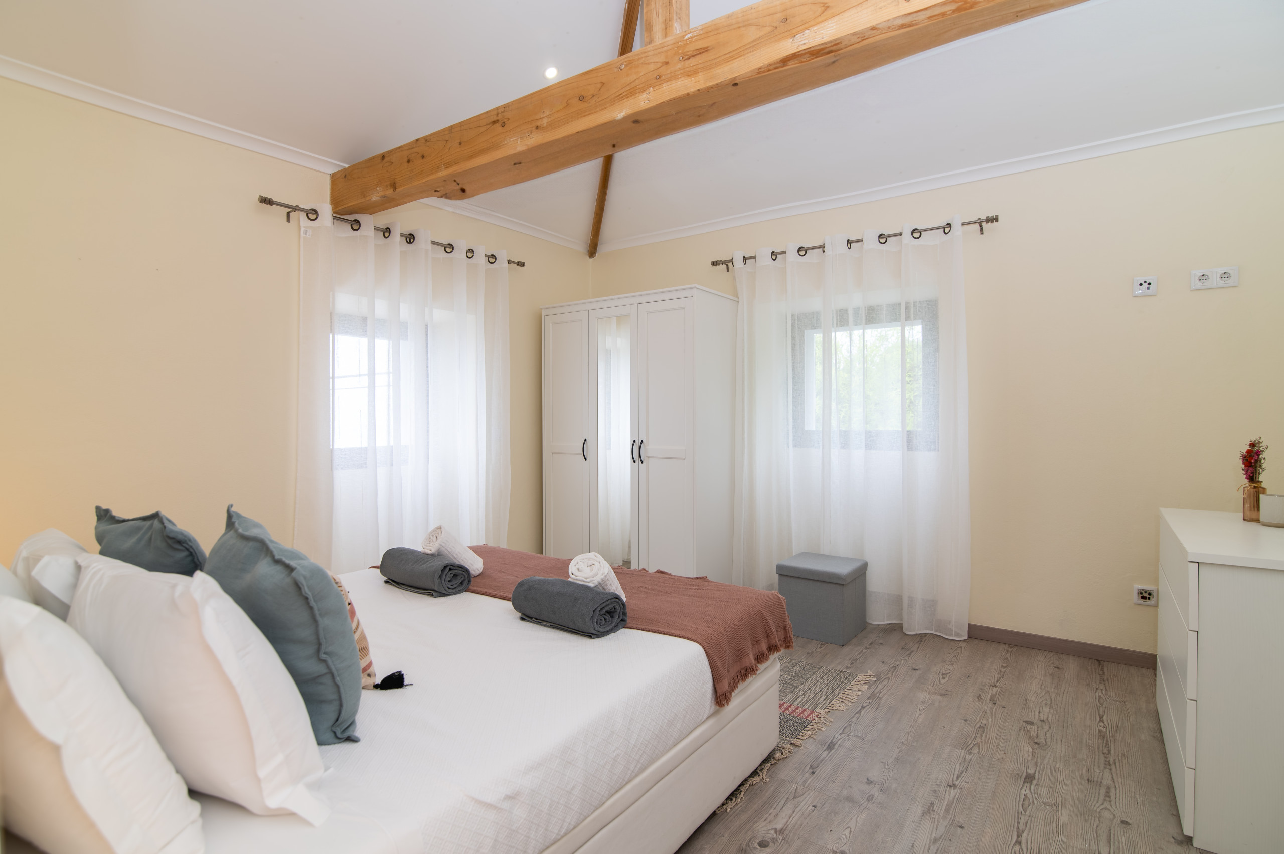 A casa dispõe de três quartos acolhedores – dois com cama de casal e um com um beliche, perfeitos para acolher famílias ou pequenos grupos. Com duas casas de banho, a estadia torna-se ainda mais prática e confortável para todos os hóspedes.