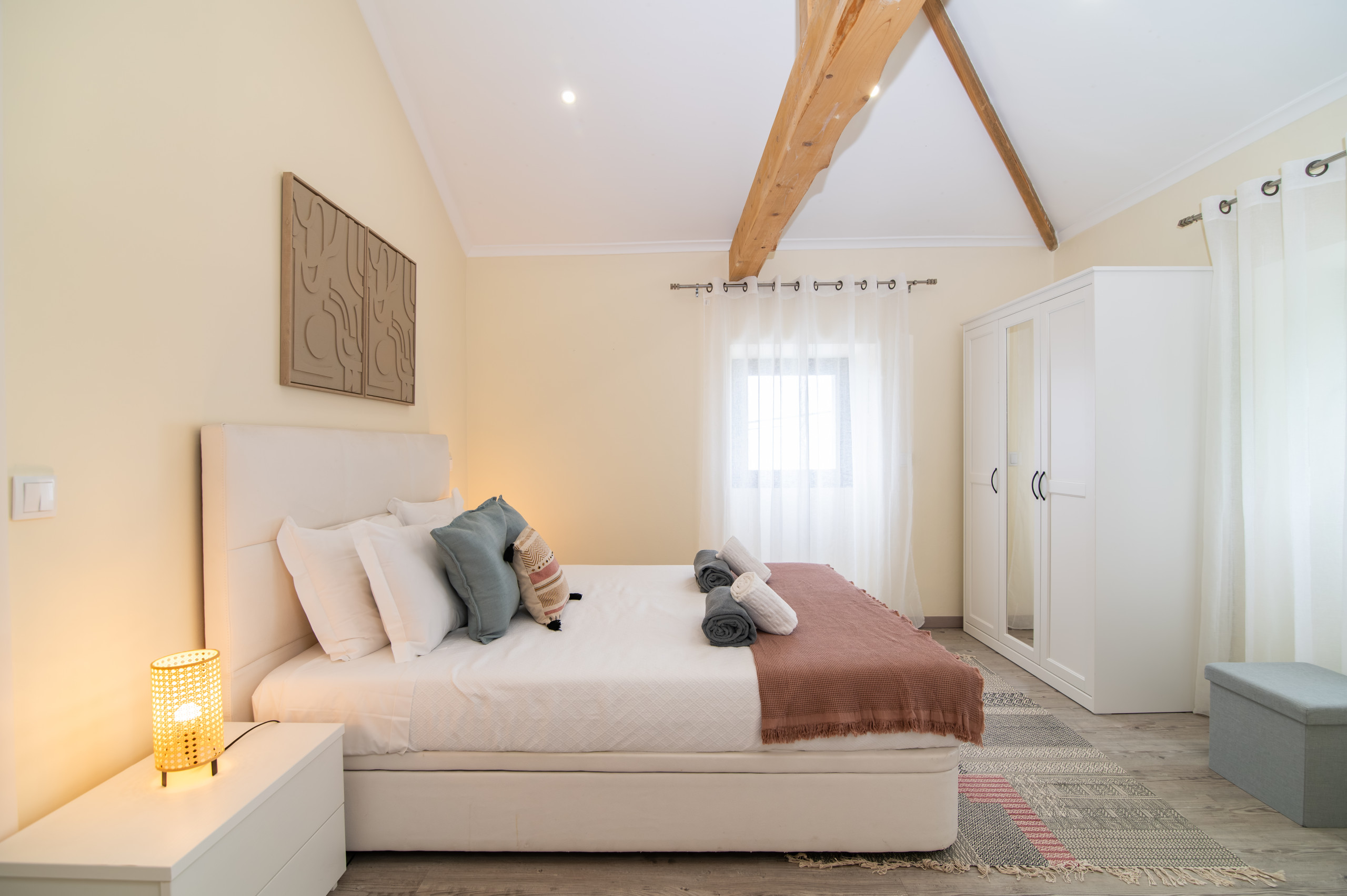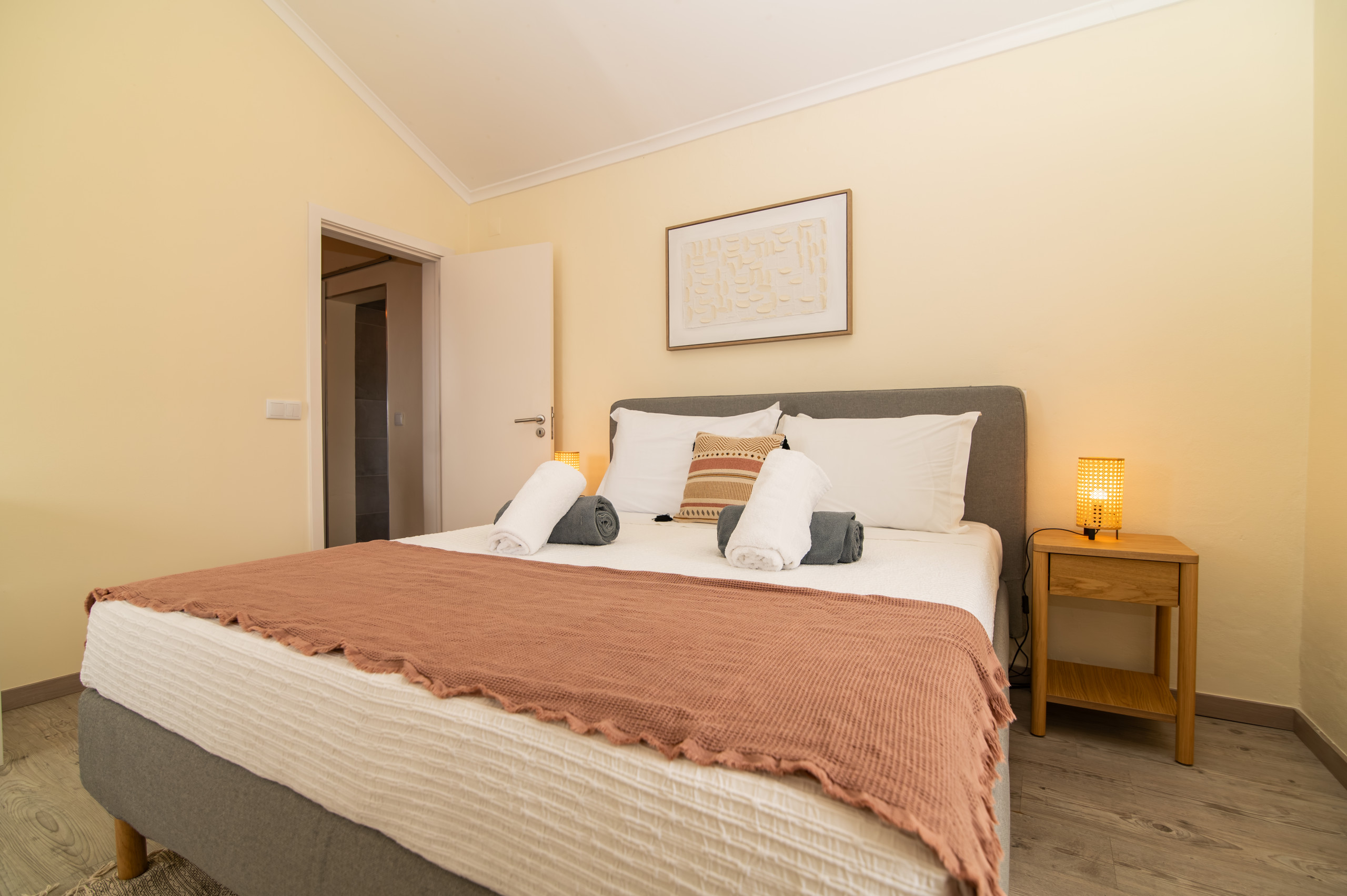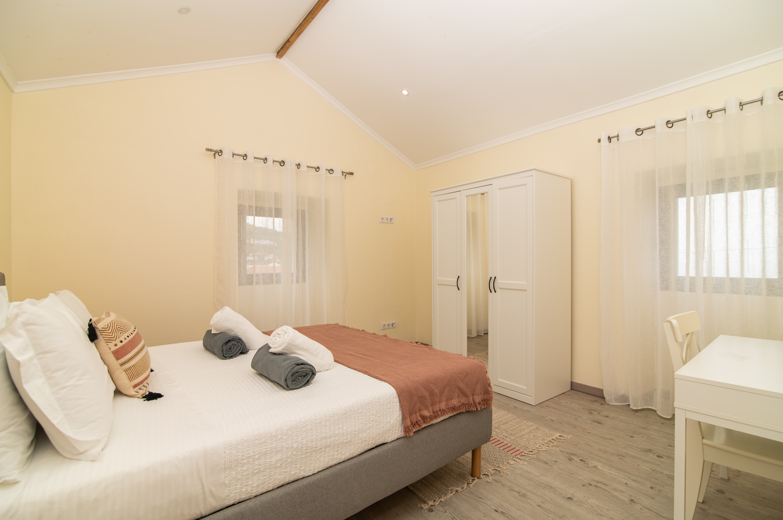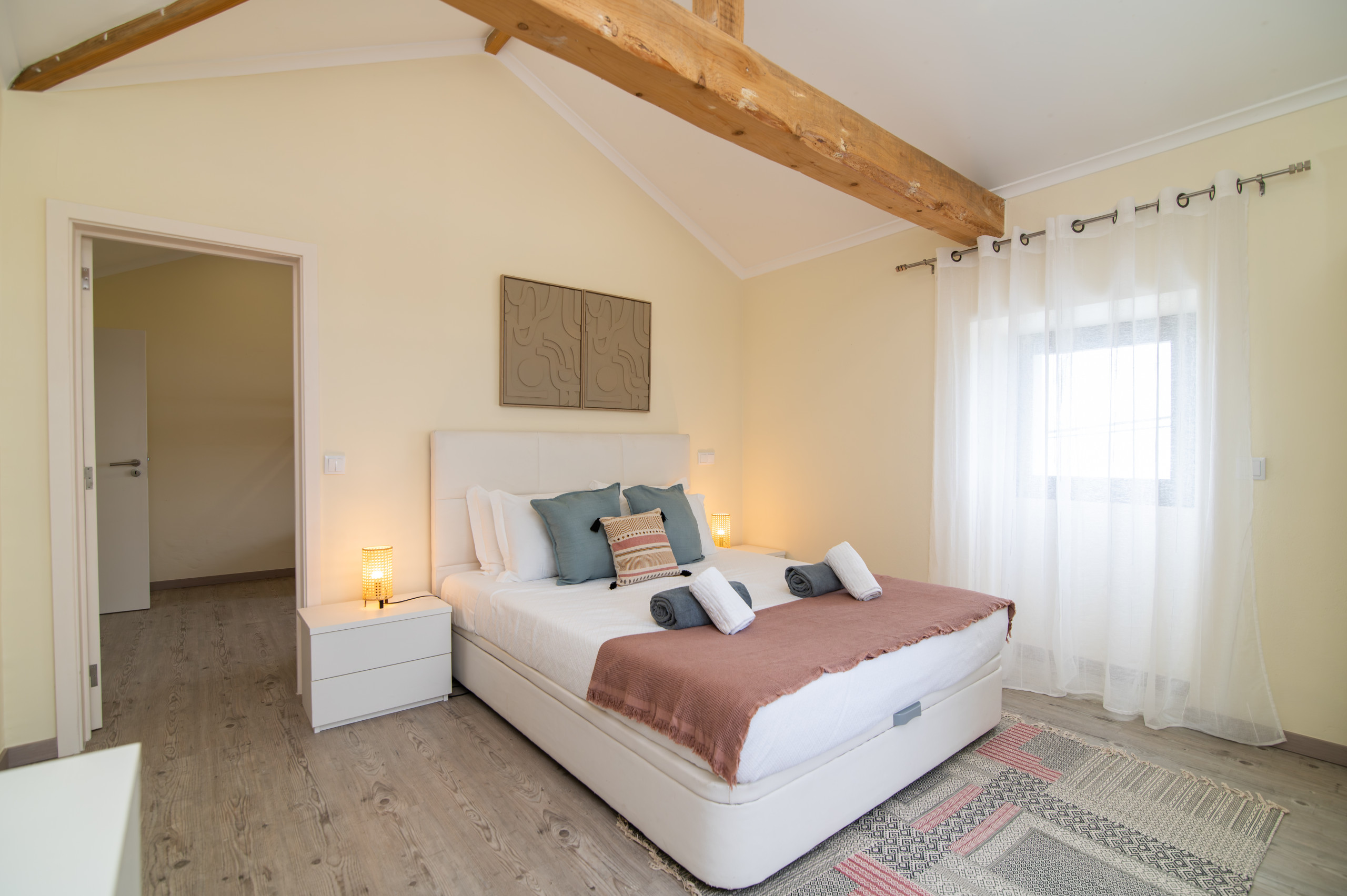 A casa dispõe de três quartos acolhedores – dois com cama de casal e um com um beliche, perfeitos para acolher famílias ou pequenos grupos. Com duas casas de banho, a estadia torna-se ainda mais prática e confortável para todos os hóspedes.