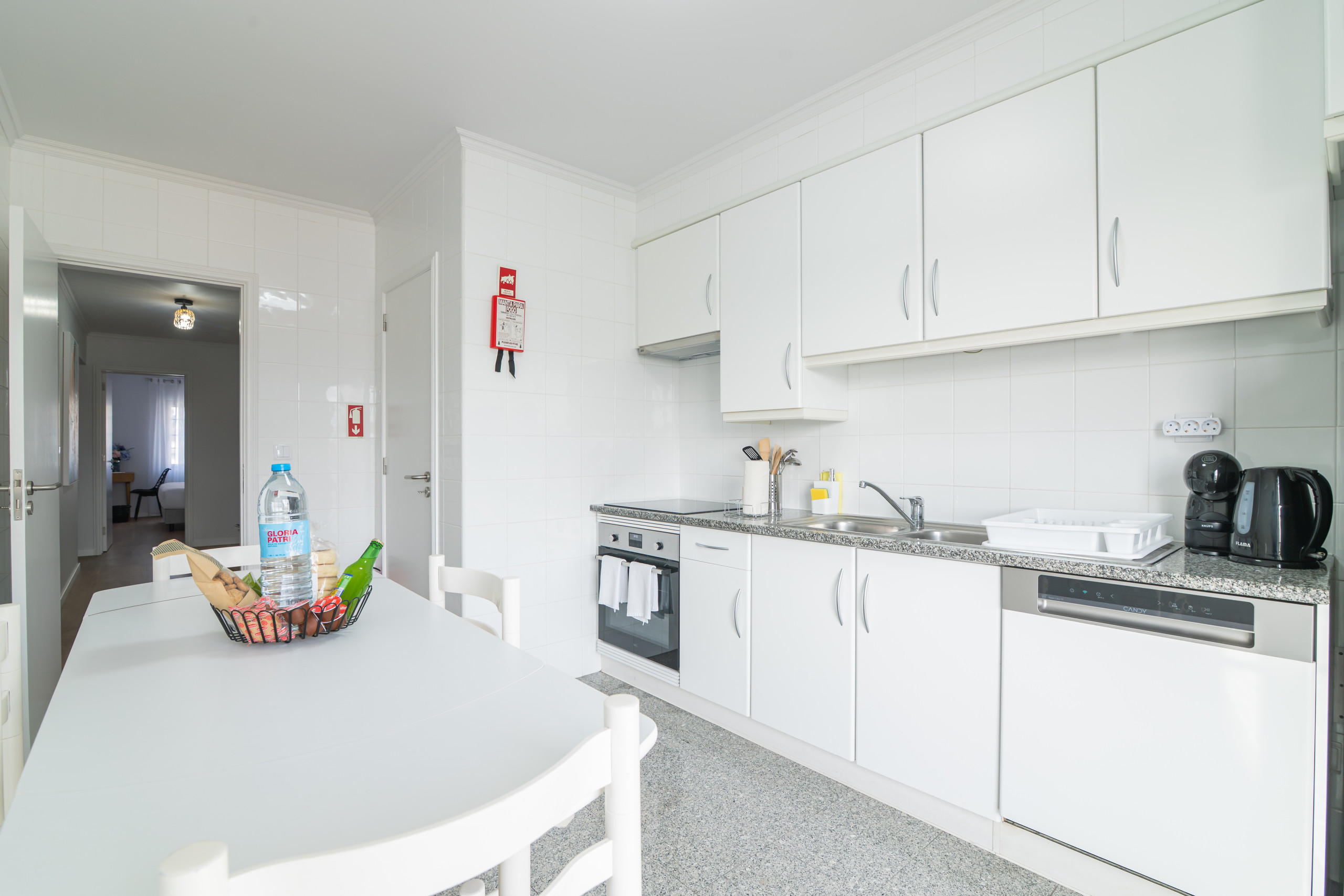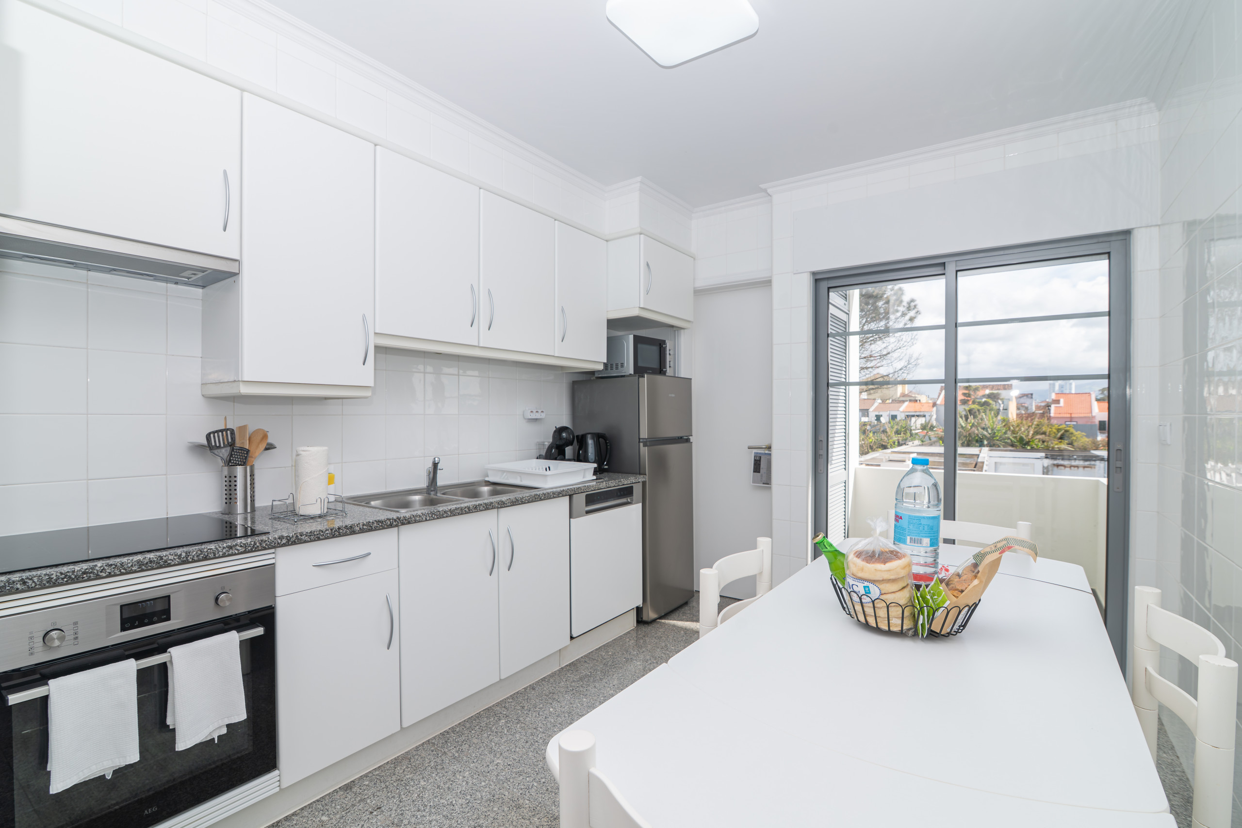 A cozinha americana, de inducção, está equipada com frigorífico, microondas, forno, congelador, máquina de lavar roupa, máquina de lavar louça, louça/talheres, utensílios/cozinha, cafeteira, torradeira e jarro eléctrico.