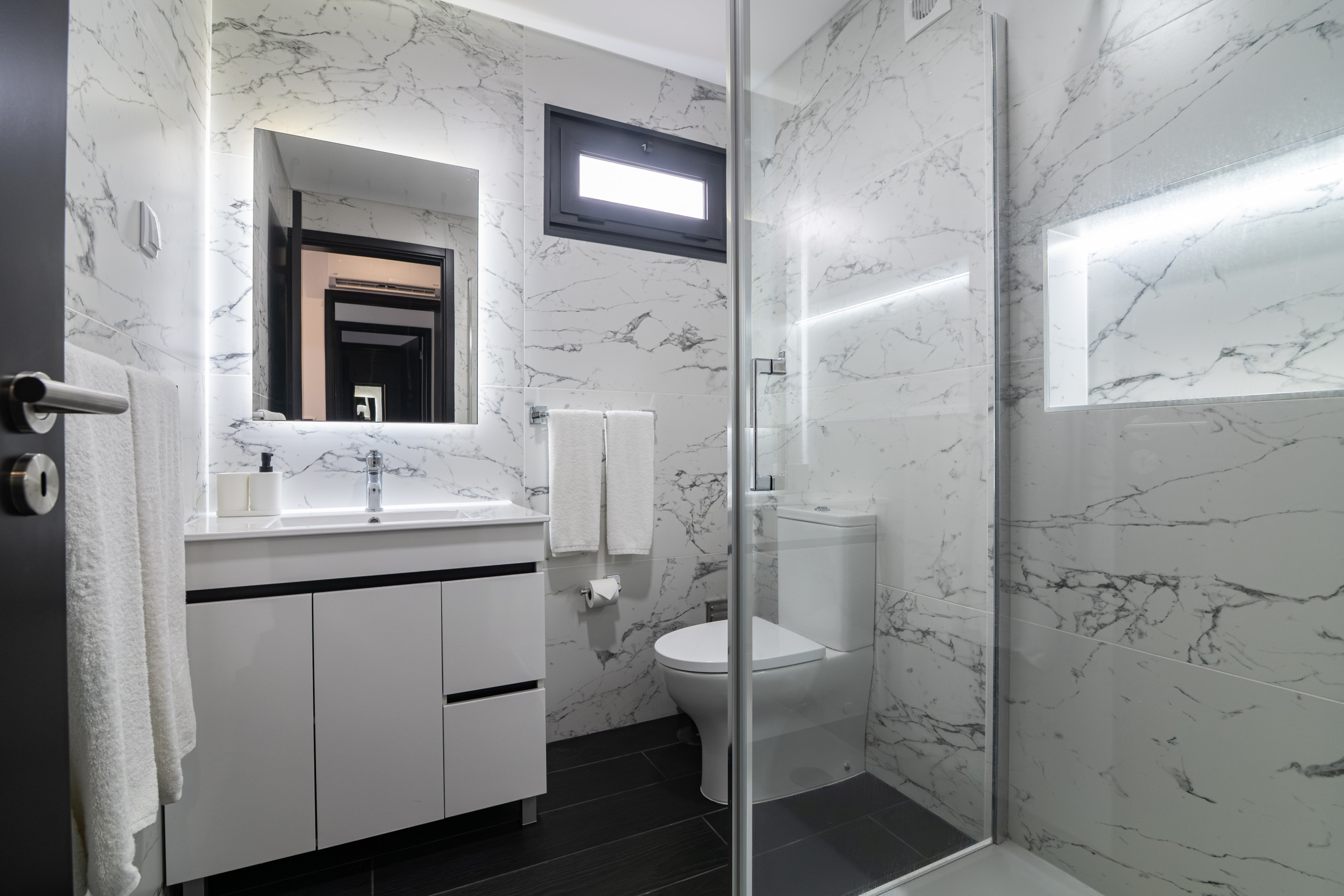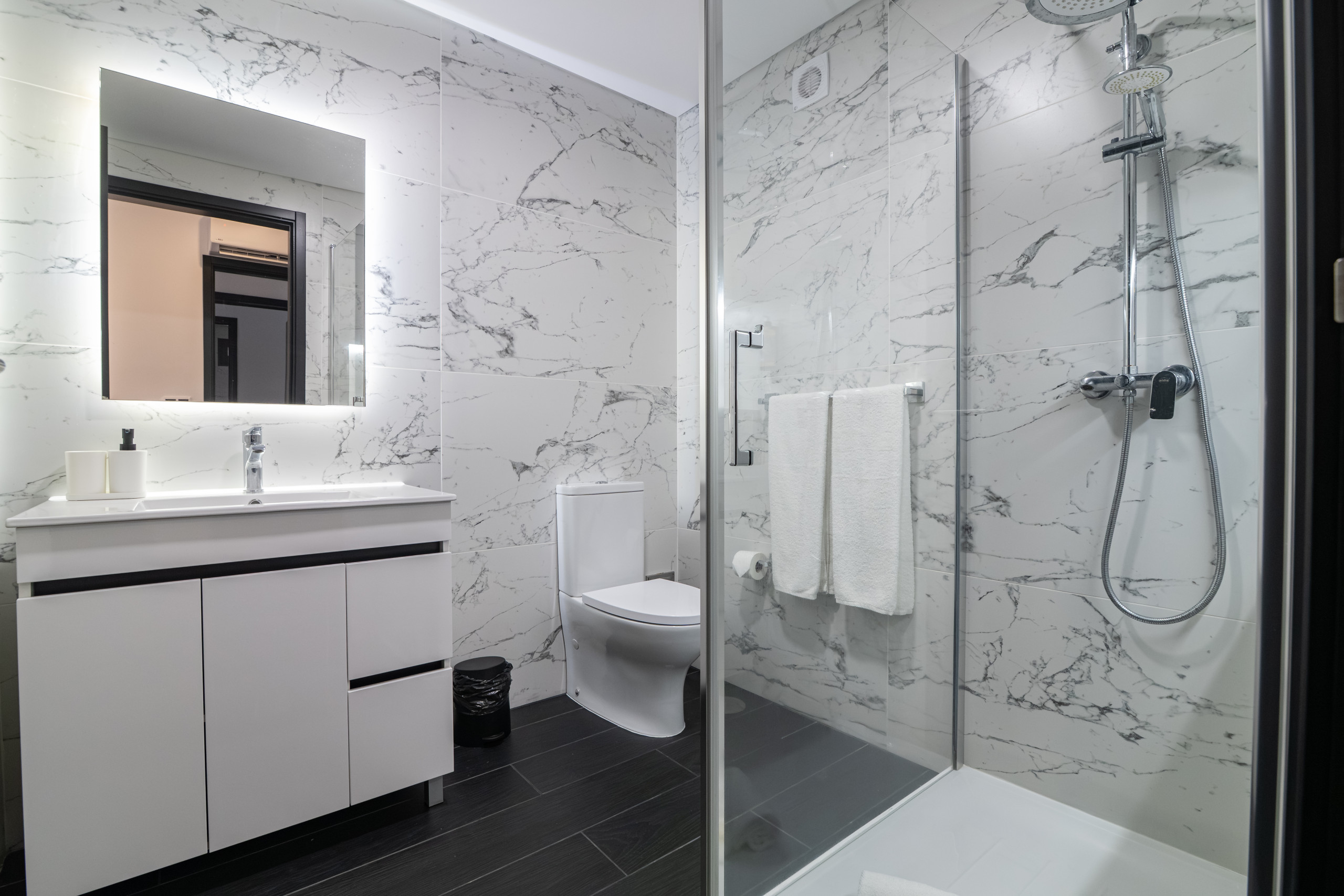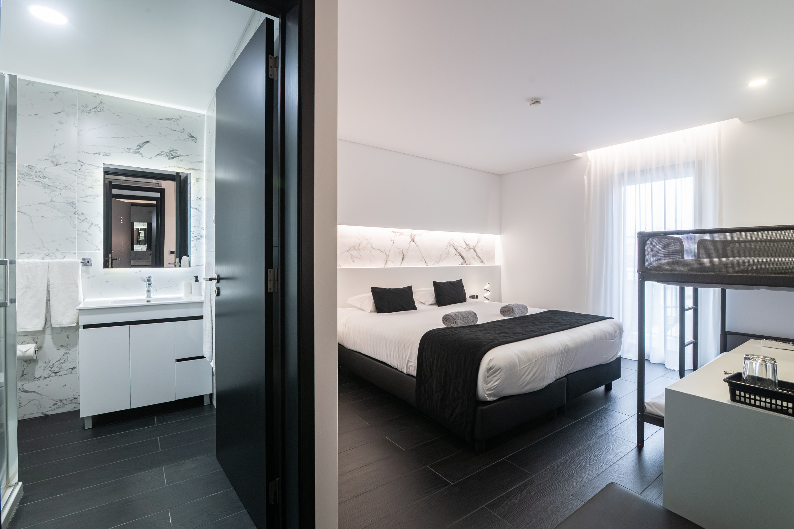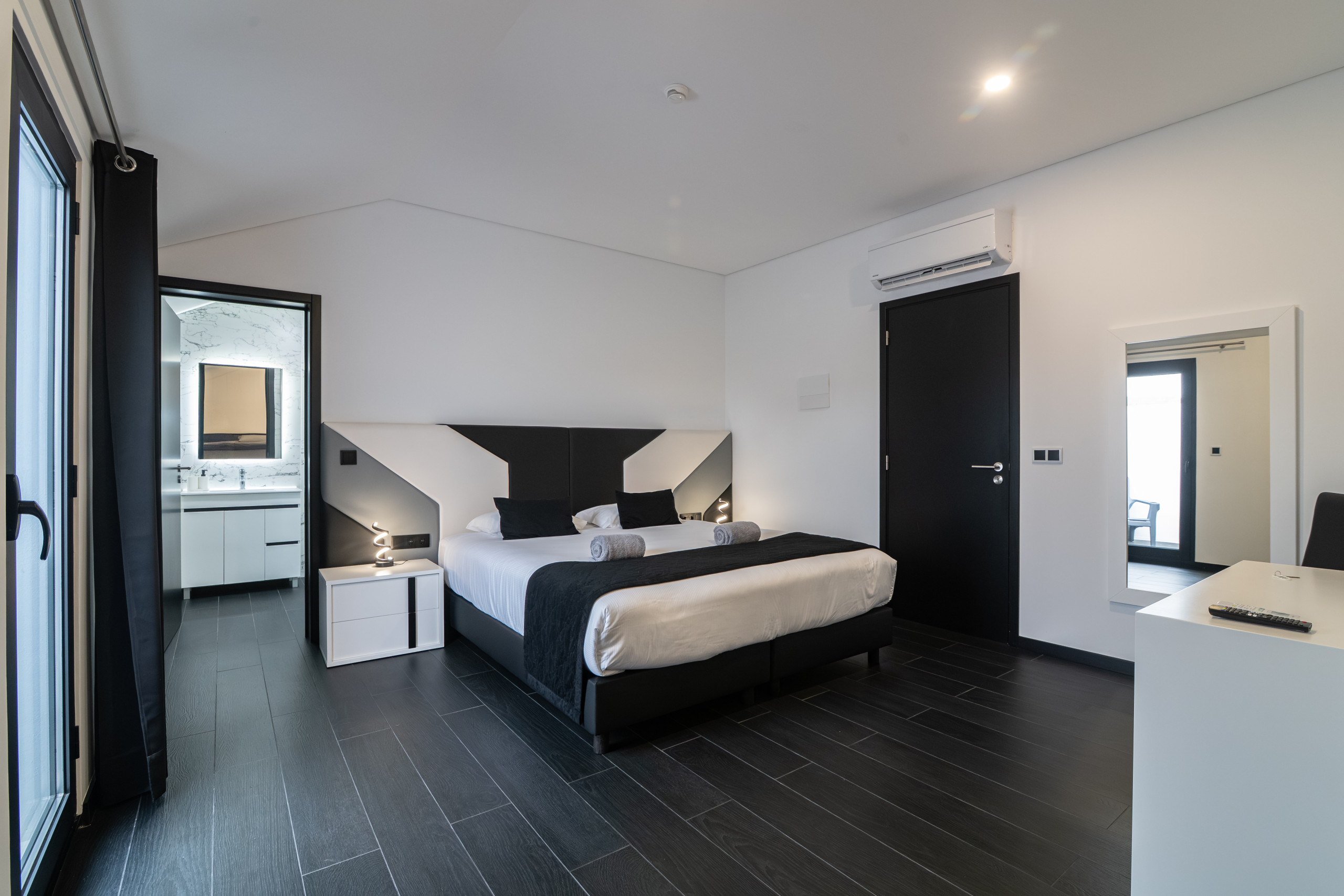 Cada quarto tem uma casa de banho privativa com chuveiro e secador de cabelo. Cada quarto também est+a equipado com ar condicionado.